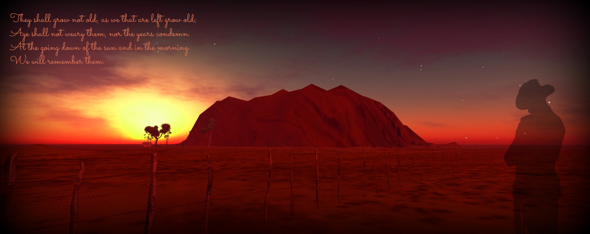 The photograph features one of the most recognisable Australian natural landmarks, Uluru (Ayres Rock). I traveled to the Australia sim in Second Life to shoot the photograph.