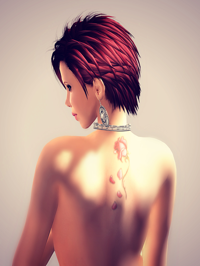 Please do! I’m showing off this adorable hair from +LaLa Moon+, one of my favourite styles from the Hair Fair this year. I love short, flirty styles, and this one is just too cute not to show off! I’m also showing off my new tat from Letis Tattoo. I rarely wear tats, but this one was just so delicate and feminine, I thought it was just what I needed to compliment my new do 😉