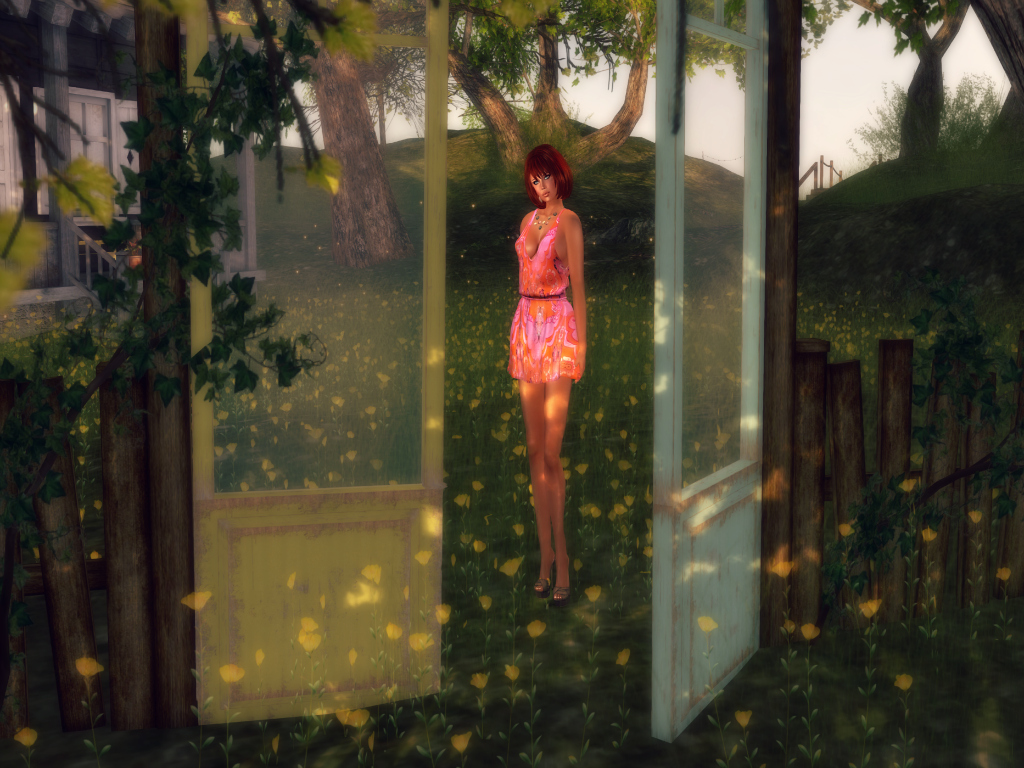 O…K…a door set into a fence. And it’s open! Maybe there’s something here to keep me occupied for a while. Ugh! No path? If I get grass stains on these pumps, somebody is going to be in BIG trouble!