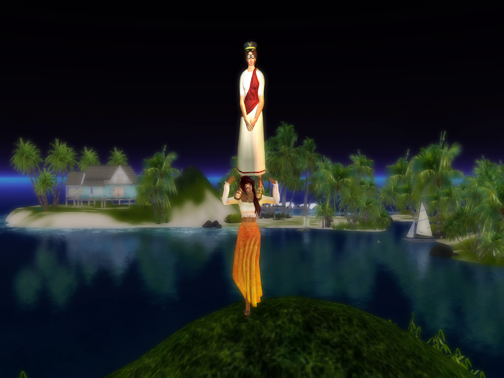 Egads! Rod can walk on water! Of course, with those shoes, he may have actually been skiing, but still, I was brought back to the reality that a Linden really can do anything he wants in Second Life. Well, at least Rod can!