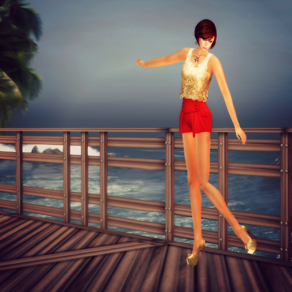 Keeping with the vintage feel and popping hues of the Razzle Dazzle theme, this is a perfect example of an outfit that is timeless. Red and gold, sequins, the lovely flow of the shorts and beautiful texturing, I feel feminine and sexy in this hot little number. Lots of colour choices for these items *bemoans the fact there weren’t fatpacks*