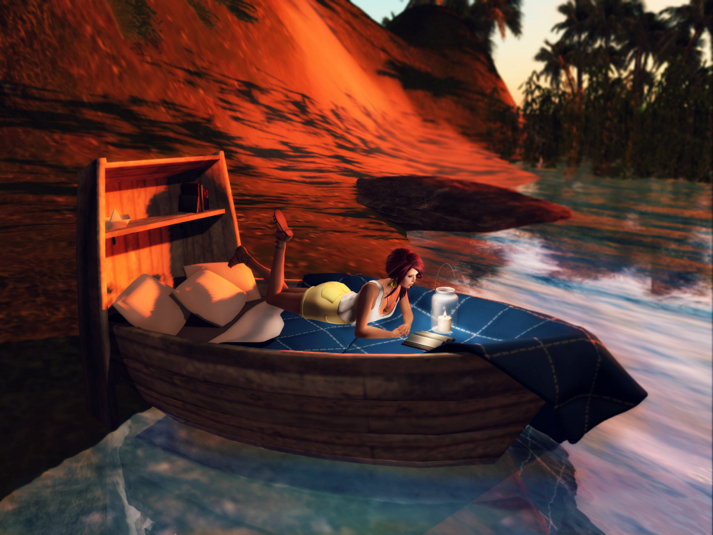 While I spent yesterday morning relaxing, today started completely differently. When you have changed the sheets, done two loads of laundry, bathed your pigeon-pooped-on cat, cleaned the fridge, bathroom and laundry room, taken out the trash and gotten groceries all before noon, I think one is entitled to spend the late afternoon lounging around reading. The fact that it is on a waterborne bed makes it all the sweeter.