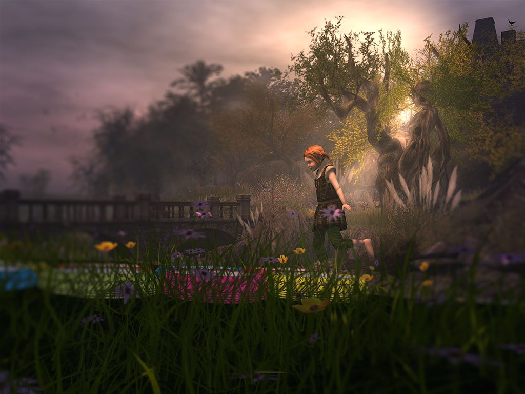 When I arrived, I realised that it wasn’t an avatar playing; the child is a part of the scene. As I watched her hopping in a continuous loop, her dolly flopping freely in her hand, I felt a chill roll down my spine. There was something freakish, bizarre and creepy about the scene. I spent probably an hour there, shooting from different angles with different lighting to see if I could recreate the sense of foreboding I felt. I finally could stand it no longer and wandered away.