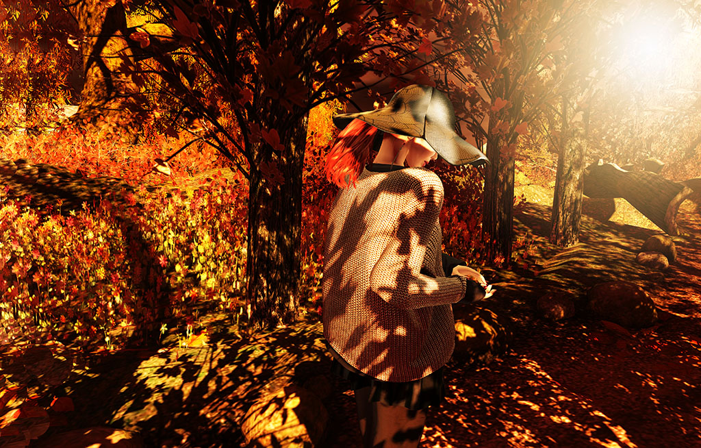 Between JfL Real Hats and (Milk Motion), I’m covered. The hat is one of Johnfrancis’ two latest releases (there is a plain version, along with the patterned chapeau I’m wearing) and the sweater and skirt can be found at this month’s round of Collabor88. Only two days into this monthly event and I’ve managed to get in twice; once, to shop and the other when I accidentally hit TP instead of copying the SLurl from the map. Never fear – I left quickly to make room for those waiting to get in!