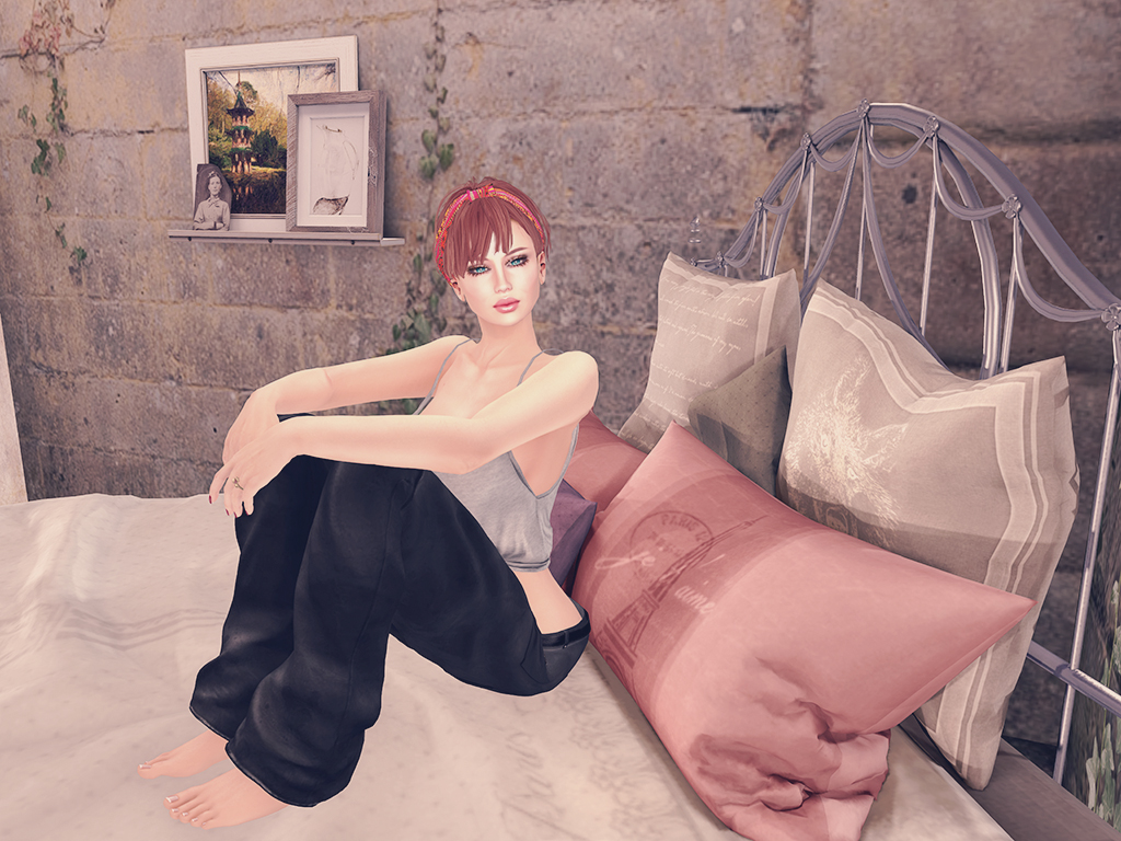 Following with the scarf theme is Zinnia, another cute style from [kik]hair. I’m a sucker for short cuts with fringe, so of course, this was the first one I grabbed. The scarf is separate, in case you want to wear the style alone, but you can click the band to select one of five colours. Not just cute, but functional, as well!