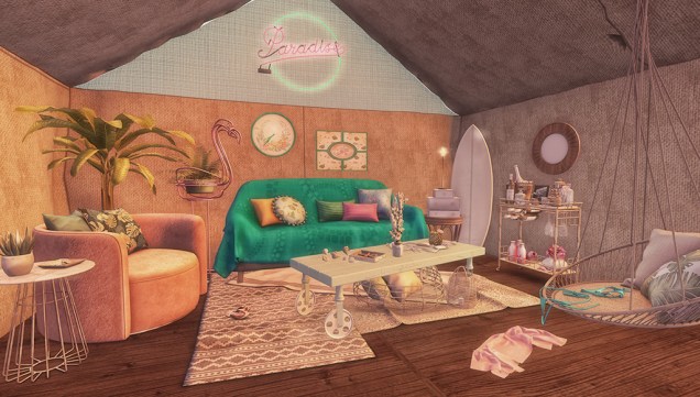 But seriously, whomever named this piece had to have a bit of a whimsical streak. I fully expected it to disappear from my inventory (“Poof!”), but thankfully, it didn’t. From Soy. found at the January round of The Liaison Collaborative, it is a must-have for decorating. I can see this equally at home in the bedroom or even a large bathroom, as well as the living area I set up with loads of lovely things from the January Deco(c)rate and gacha prizes from Kustom9.