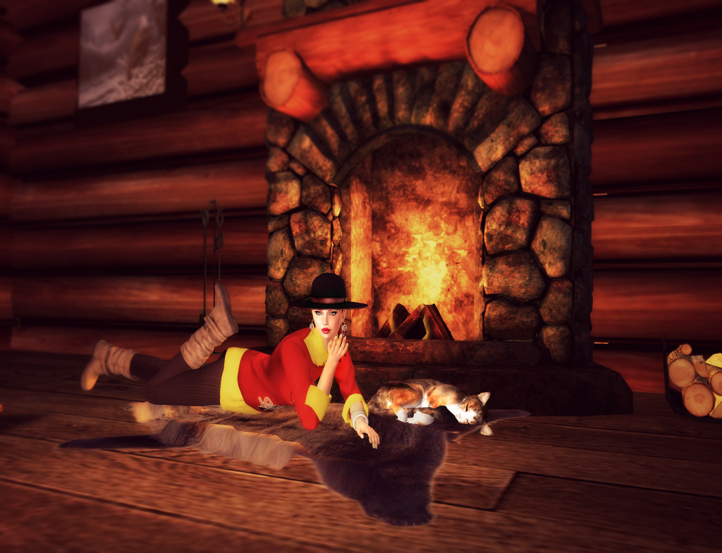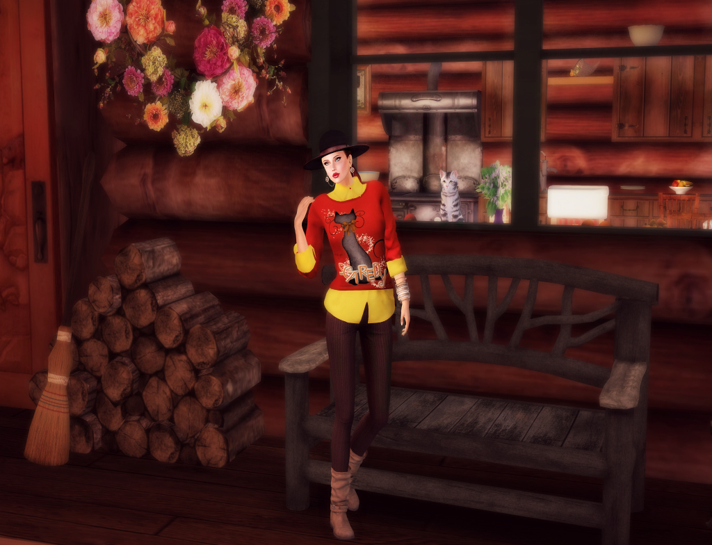 I have to mention that when I slipped into this top, I had no idea I would meet these little kitties as I visited this cabin at Dimrill Dale. The little fella in the window seemed intrigued; as you can tell, the calico near the fire was much too content to nap in the warmth than be alarmed by another feline so nearby 😉