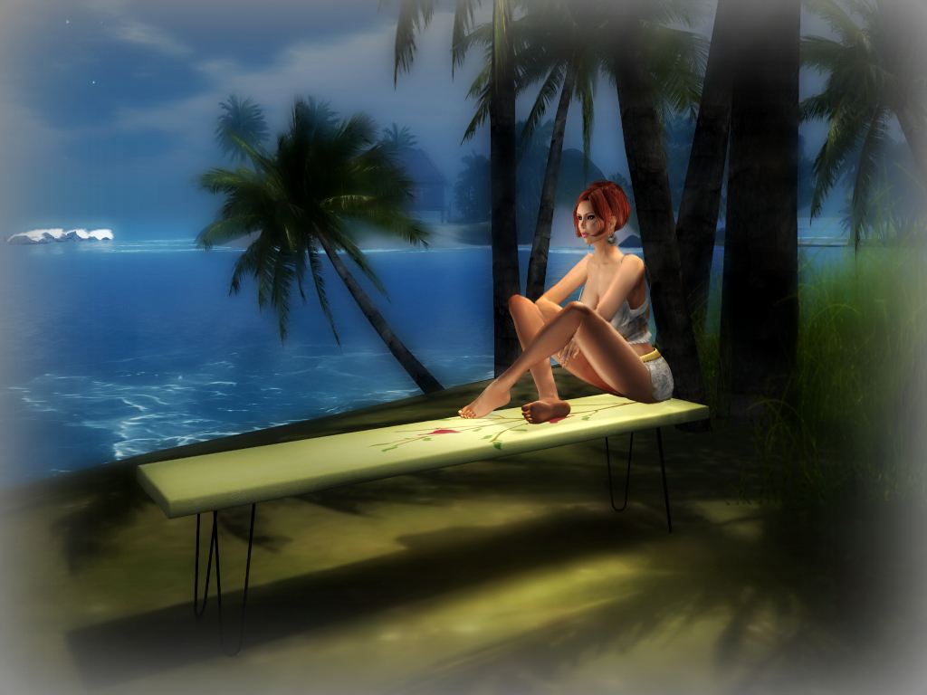 I snapped this photo about a week ago while I was playing with my Kittycats. I had plopped down on this blanket, ostensibly to read, and the pose with my virtual cats reminded me so much of the behaviour of those in the corporeal world, I laughed out loud. Attention-seeking, wrapping themselves around me, rolling on top of my book to encourage a belly rub…just so much like my “real” little ball of fur that I swear I could feel the tickle of their whiskers and hear the rumble of their purring.