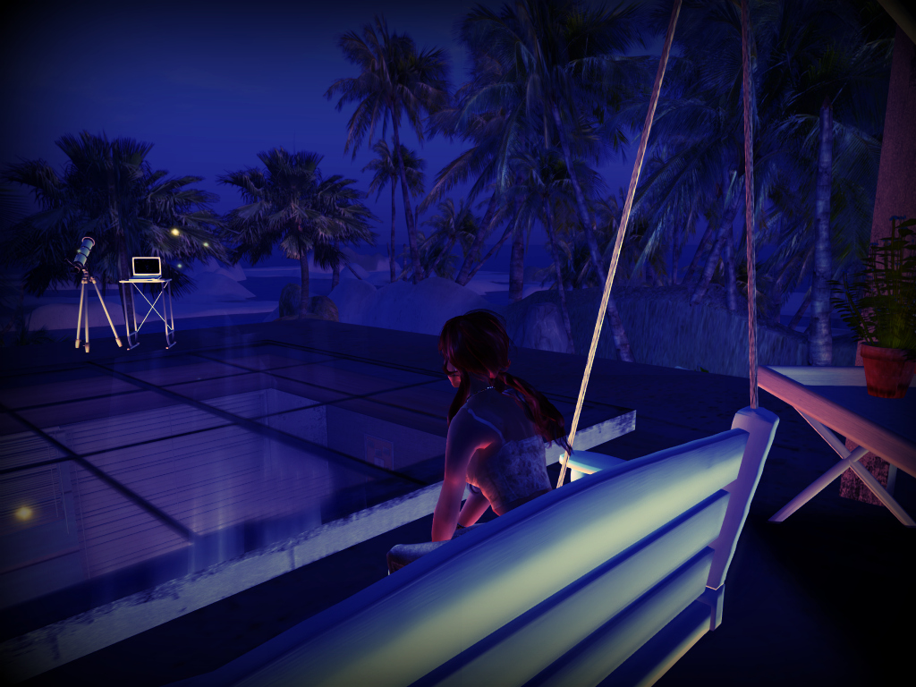 While I was standing on my platform puzzling over what to do, I decided to head over to Collabor88 to look for some inspiration. While I have never used a Scarlet Creative house for my inworld home, I almost never pass up picking up Charlotte Bartlett’s releases at C88. The angles and textures and oh, those windows (!) are heaven for photography. When I spied her Moon Rise House, my imagination just flew to a setting that is somewhat Twilightish/Gothic to showcase the pose. While I am not well-versed in either genre, I did my best. I tossed in some of the wonderful items from DRD for The Arcade, and I was ready.