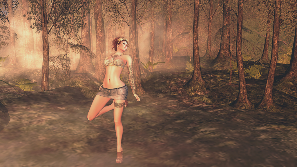 My destination was a lovely sim called Evergreen Nook. It is all decked out for autumn with a very rustic feel, so it complimented the Town & Country theme of My Attic this round. My skirt from K-CODE, earrings and bracelet from Cae and shoes from Essenz are all from this event, and I found perfect compliments from Shiny Shabby with my scarf from Apple May Designs and pose from !bang. They’re all reasons to get up in the morning and get out and about!
