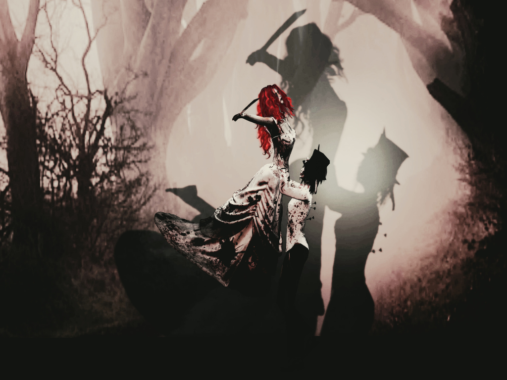 Complete avatar, including dress, skin, shape, eyes and knife (it includes hair, but I wore my own): [*RG*] Zombie Bride *REDGRAVE*