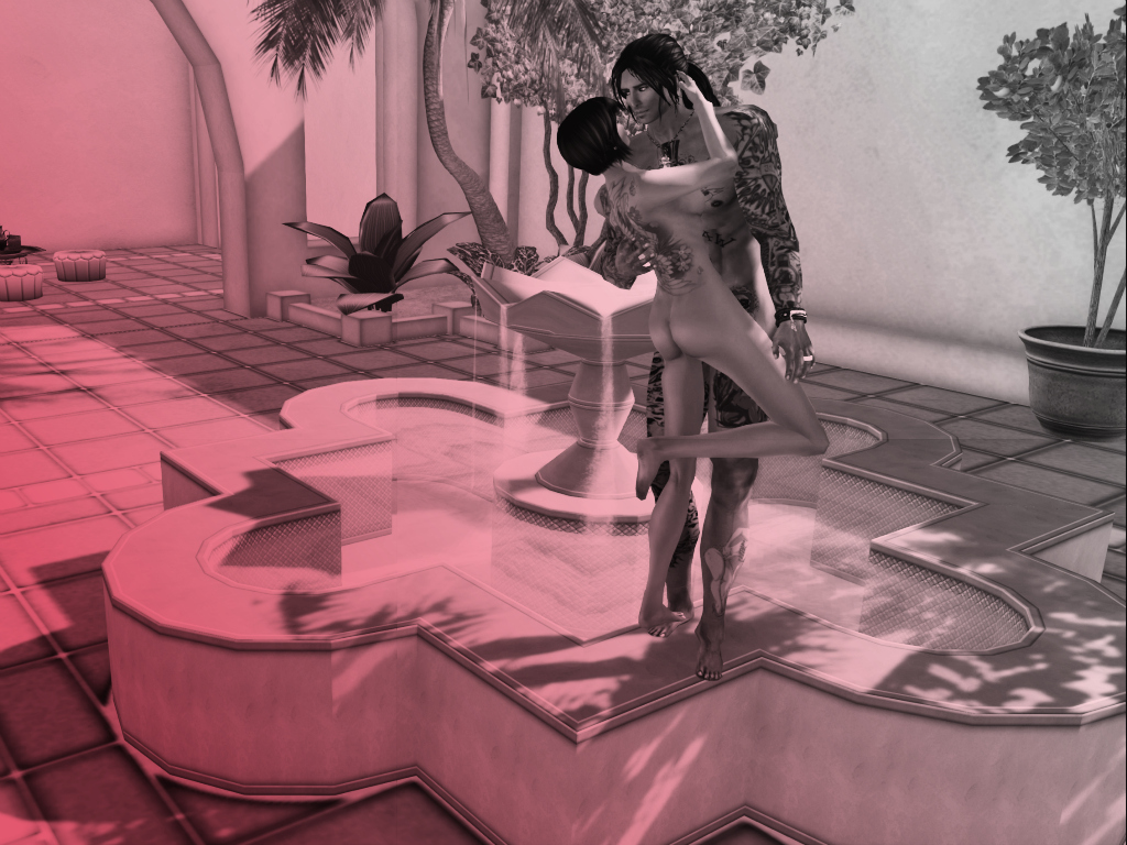 My most recent couples shoot was of Country and Weather. I don’t know them as well as the other two couples, but I had them show me their home to get a feel for who they are. These two are different from the others in that they are a couple in real life, as well as Second Life. I wanted to give them a setting that was a bit exotic and with a mysterious feel.