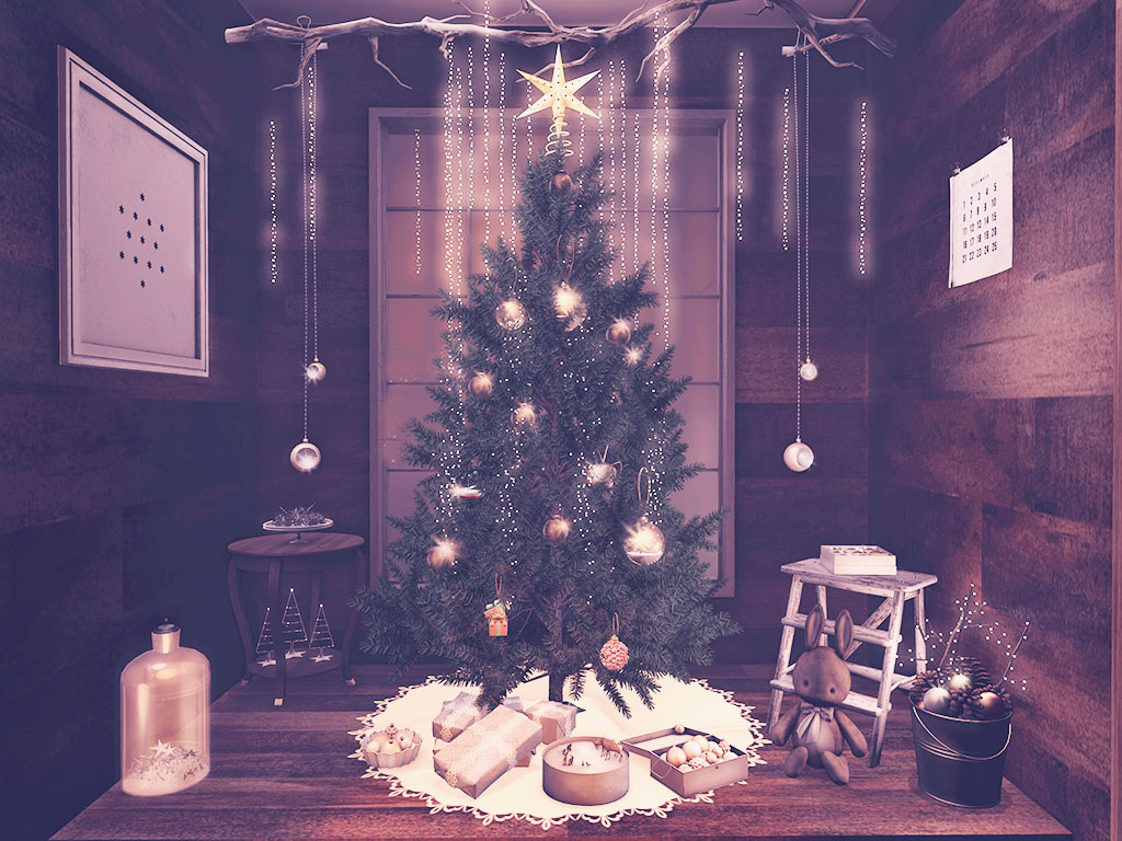While I have always had a Christmas tree in my home in Second Life, this is the first year I have decorated my own. The ornaments in the gacha machines at the Tannenbaum Winter Market are designed to fit the Botanical – Green Douglas Fir Christmas Tree, also found at Tannenbaum. With the tiny land impact of these mesh ornaments, I could finally decorate my own tree. And when I saw the winter ornaments in metal box from [ keke ] for The Arcade, I was flooded with memories of those Christmases with my family, rediscovering the Christmas treasures, handed down through the generations.