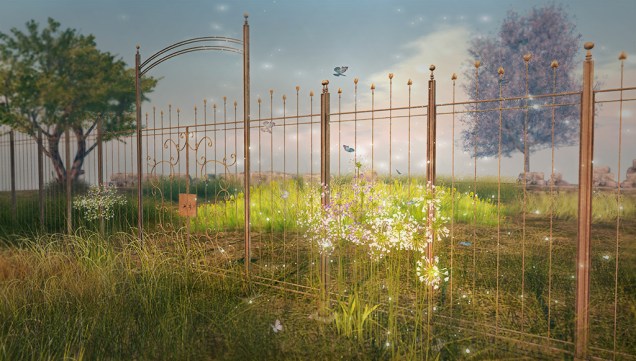 One designer whose work who frequents my posts – and also my permanent home – is [ keke ]. Delicate, detailed and delightful are the first words that come to my mind when I think of Kean Kelly’s creations. I am sure (if you look closely at the photo) you will recognise the butterflies, which have flittered their way through several of my recent posts. She has just released the lovely allium flowers for the July round of Collabor88 and in her mainstore, you can find the lovely garden gate and fence. If you were a subscriber of Deco(c)rate a couple of months ago when she contributed the Neverland Gate, you can now pick up the add-ons at the mainstore, as well. As ever, they are a lovely example of her talent and craft.