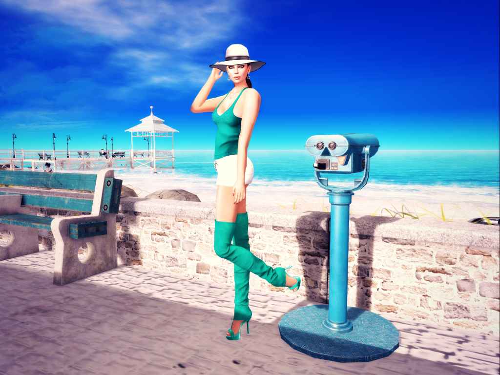 It has it all…gacha stalls and stores (still filling up), a bands shell, a ferris wheel and yes, a jumping castle, cliffs, beach and of course, a pier. It was rather busy while I was there with people hanging out on the beach and checking out the gacha goodies. It is a fun sim and I have no doubt it will continue to be a destination for photographers.